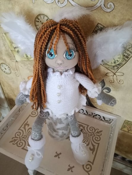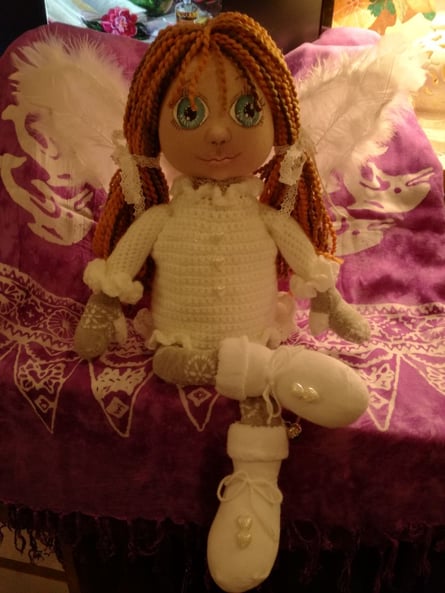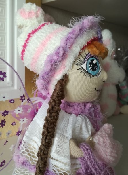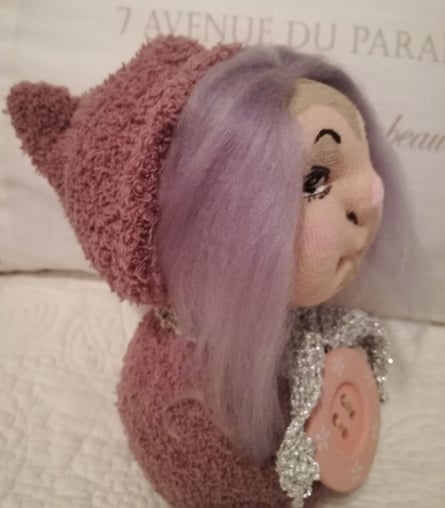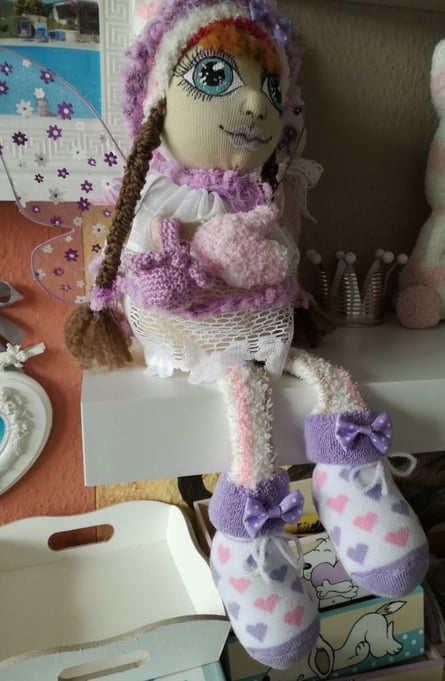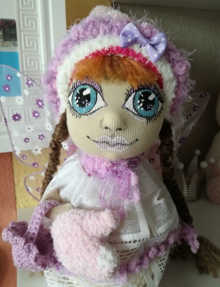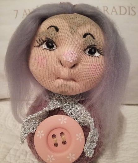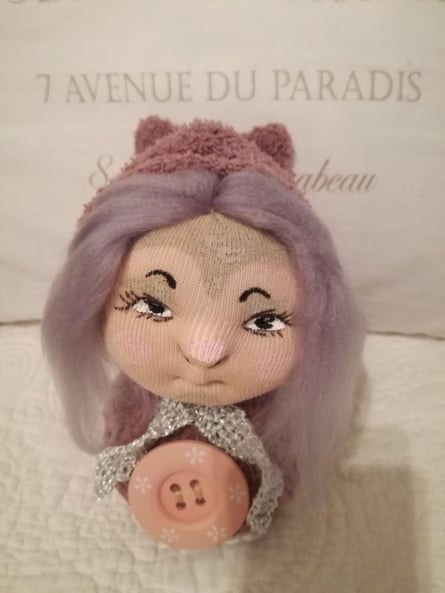 Hier hab ich mein erstes Stoffpuppengesicht bemalt ... und vorher gestopft und geformt. :-)